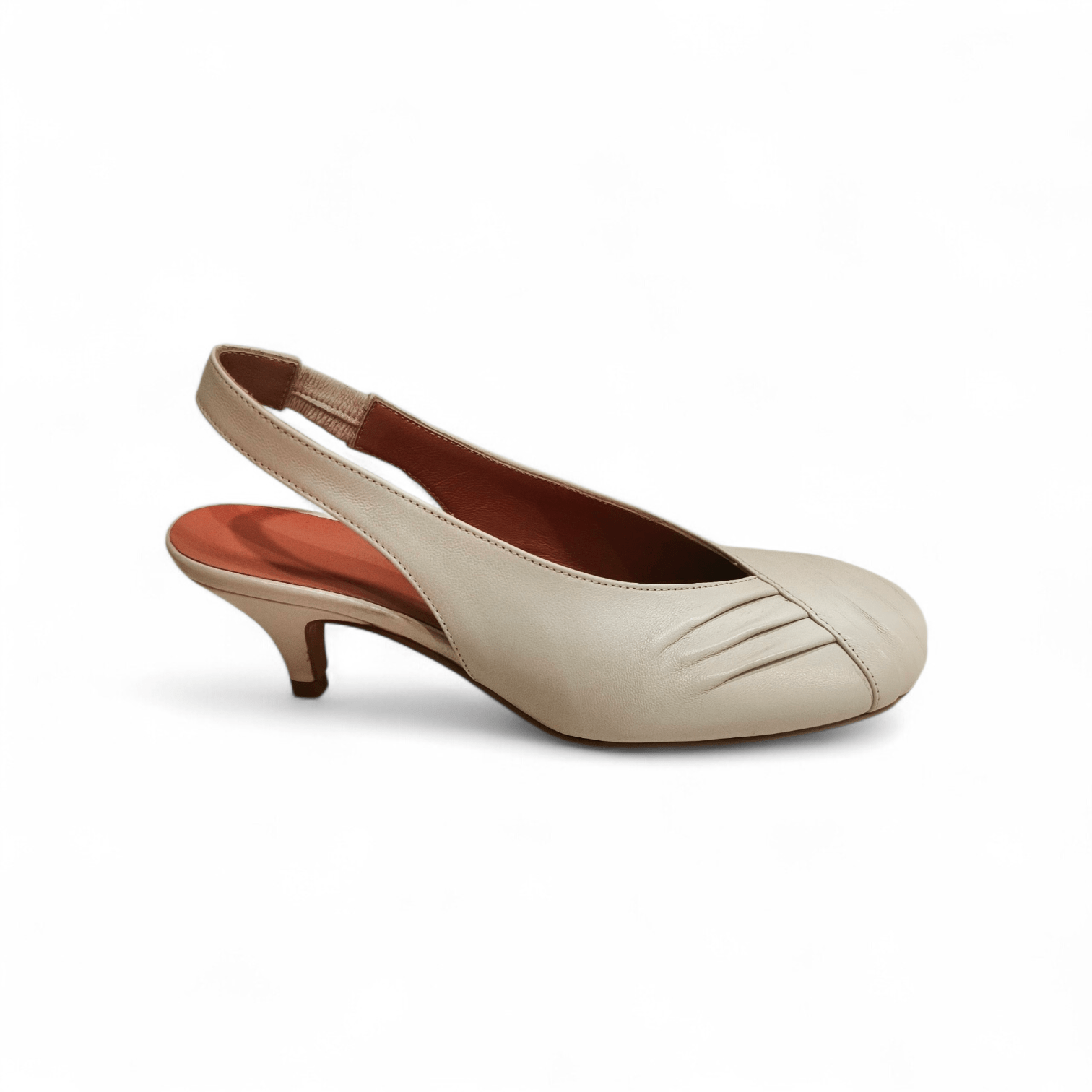 Slingback artigianale in pelle con tacco a rocchetto.