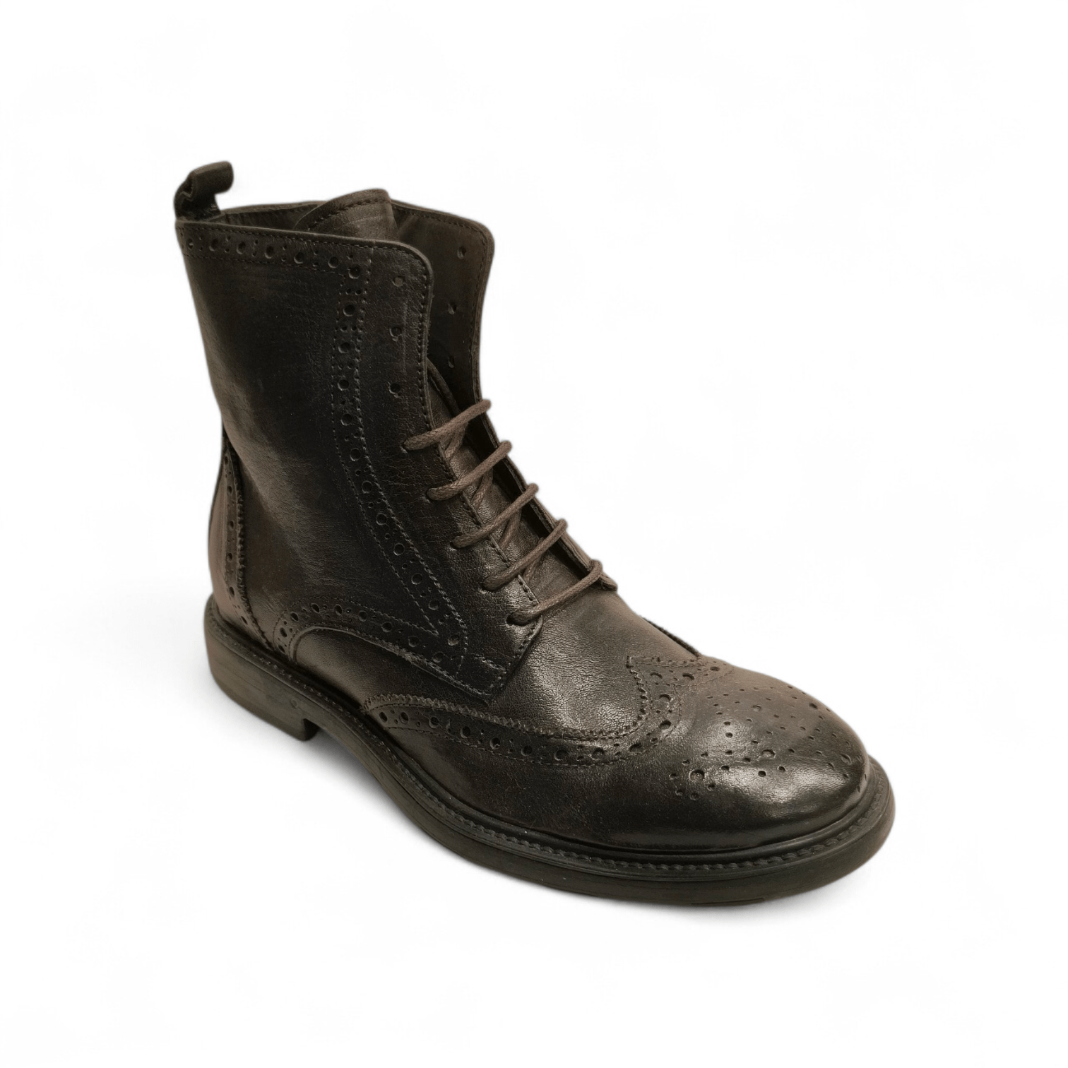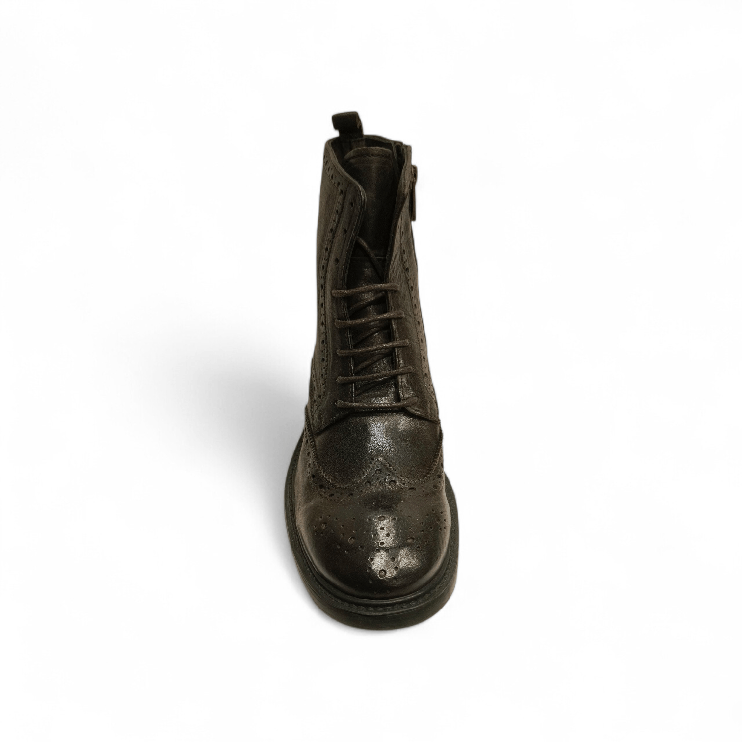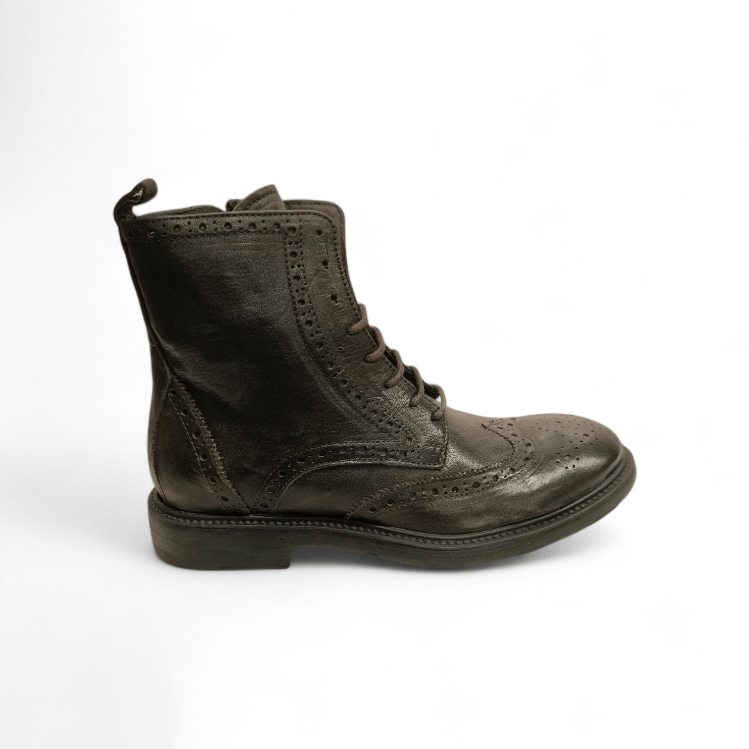 Stivaletto stringato e con cerniera laterale.