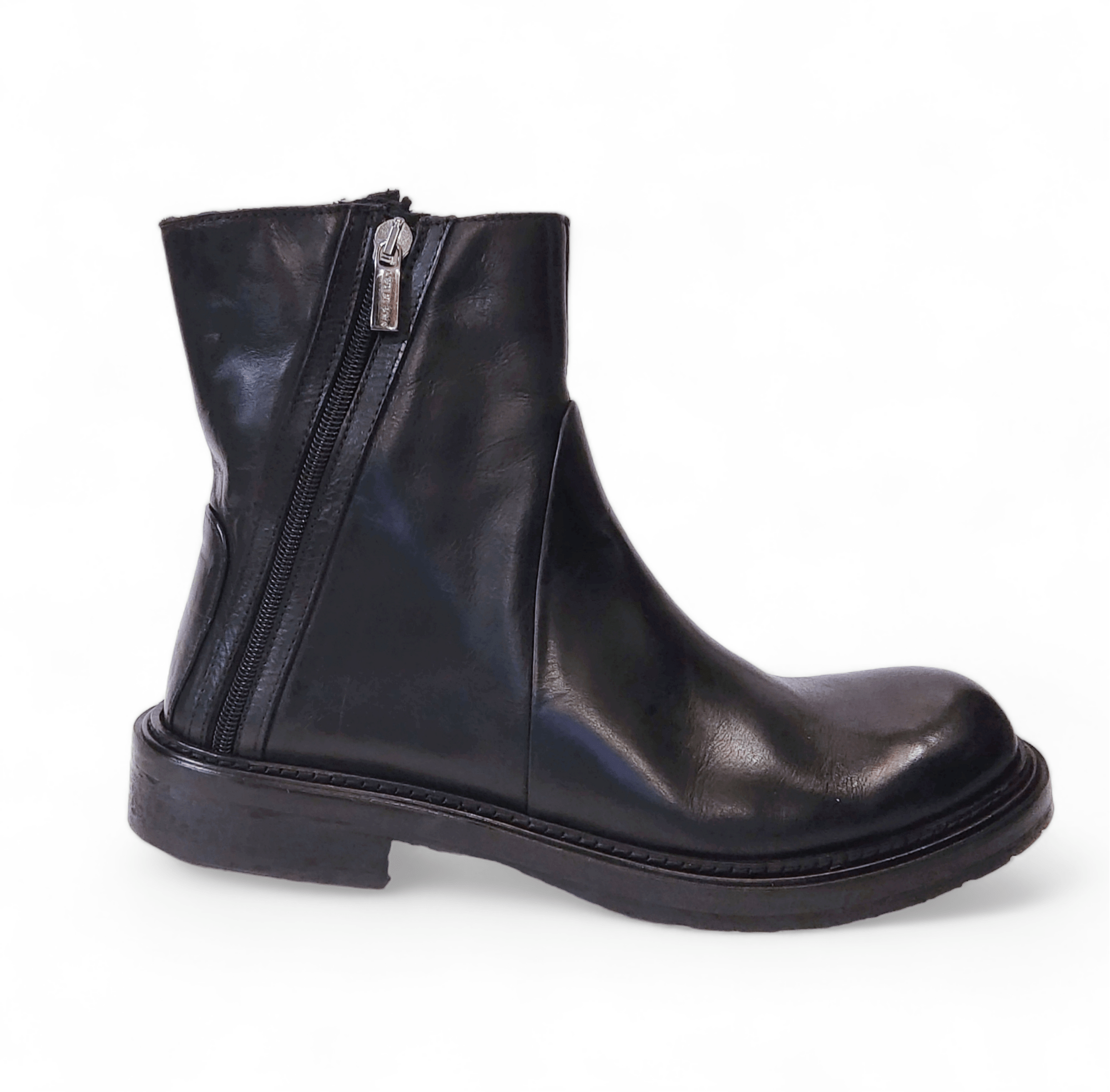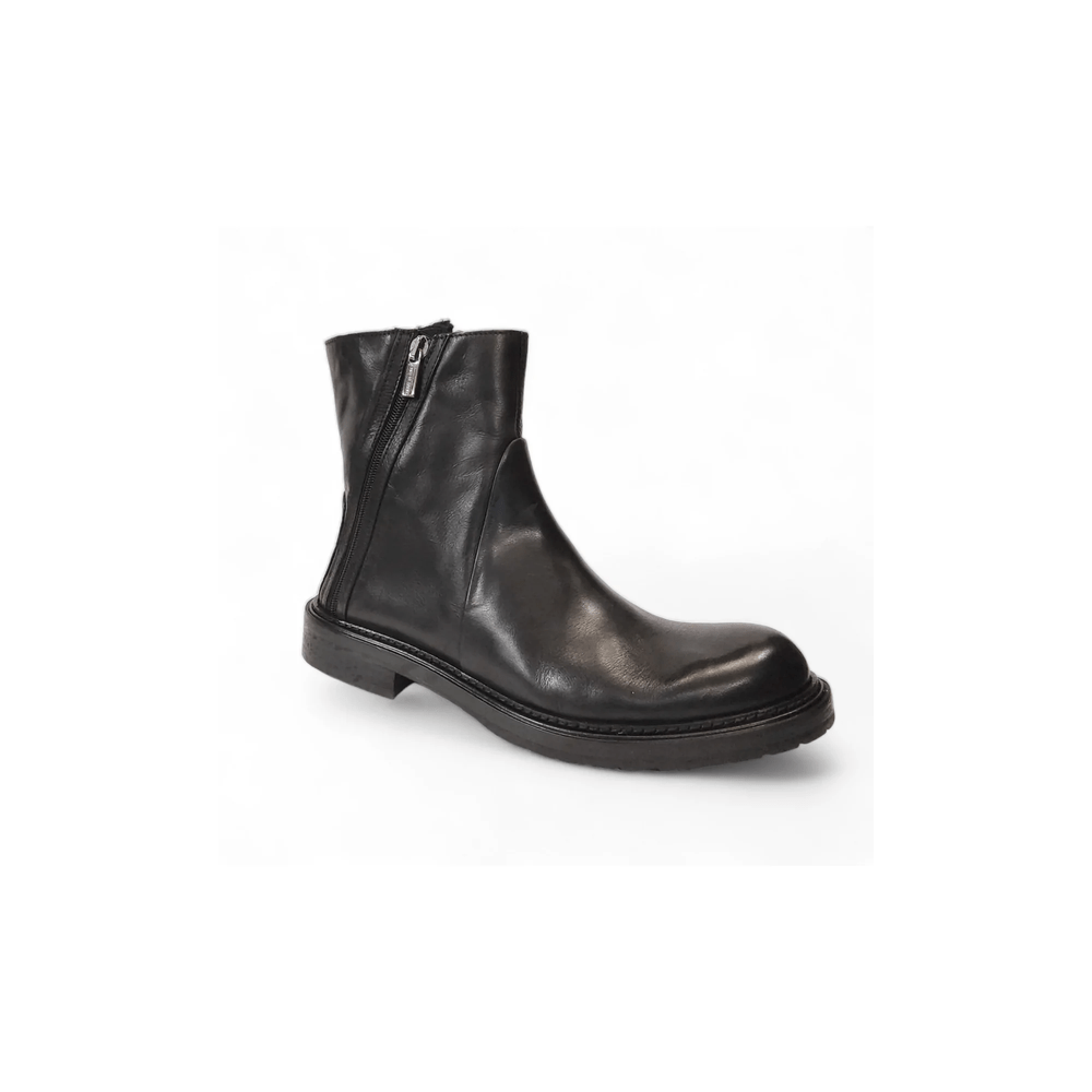 In morbida pelle di vitello, con zip sui due lati dello stivaletto per agevolarne nell’indossarlo