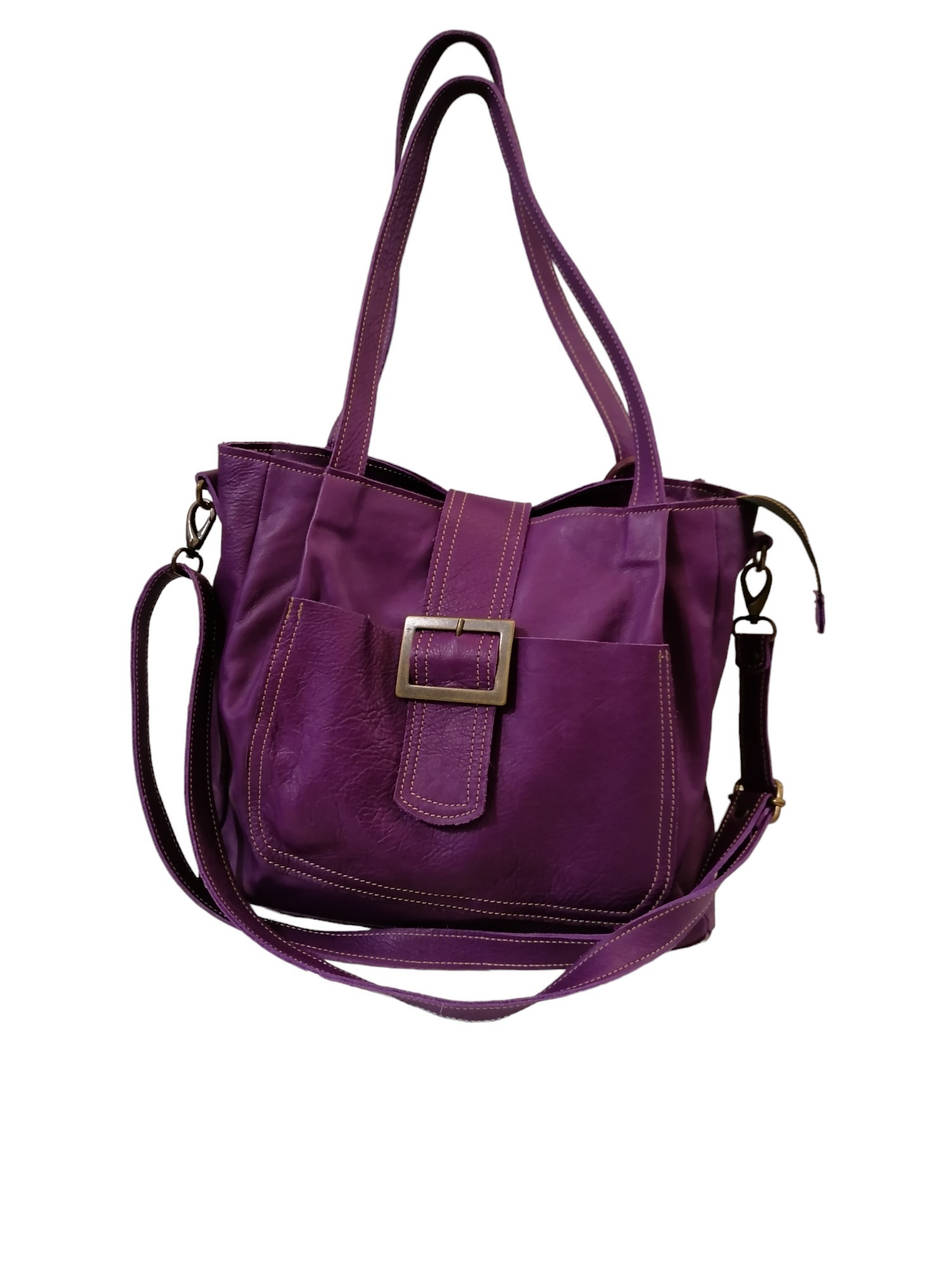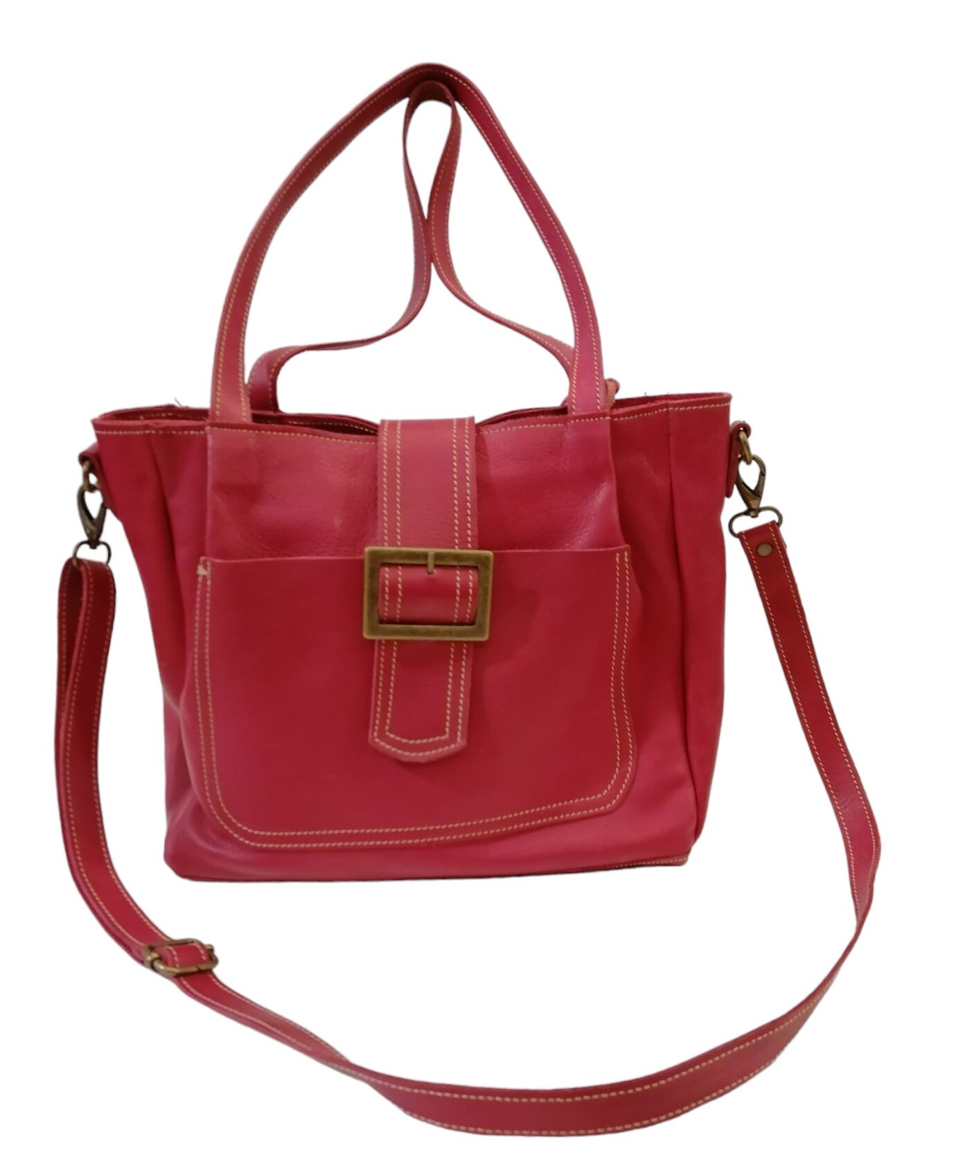 La fibbia in metallo è la caratteristica di questa borsa in stile urban chic